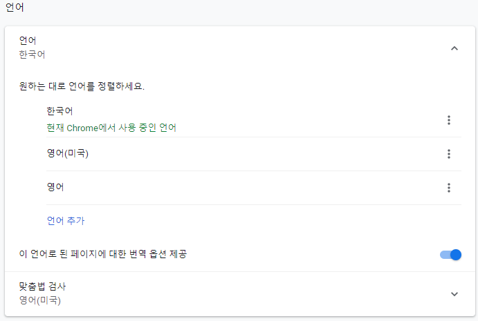 '이 언어로 된 페이지에 대한 번역 옵션 제공'