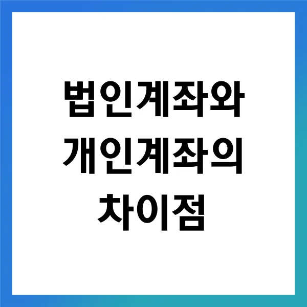 법인계좌와 개인계좌의 차이는 단순한 명칭 이상의 경제적, 법적 차이 를 내포하고 있습니다. 이러한 차이는 1인 기업 대표가 사업을 운영하는 데 있어 중요한 영향을 미칠 수 있습니다 . 법인계좌는 법적 주체로서의 '법인' 명의로 개설되며, 개인계좌는 개인 이름으로 개설되는 범용 계좌입니다. 이 두 가지 계좌는 각각의 목적과 사용 범위가 명확히 구분되어야 합니다. 여기서 중요하게 다루어야 할 점은 법인과 개인의 재정적 구분과 책임의 명확함입니다 .