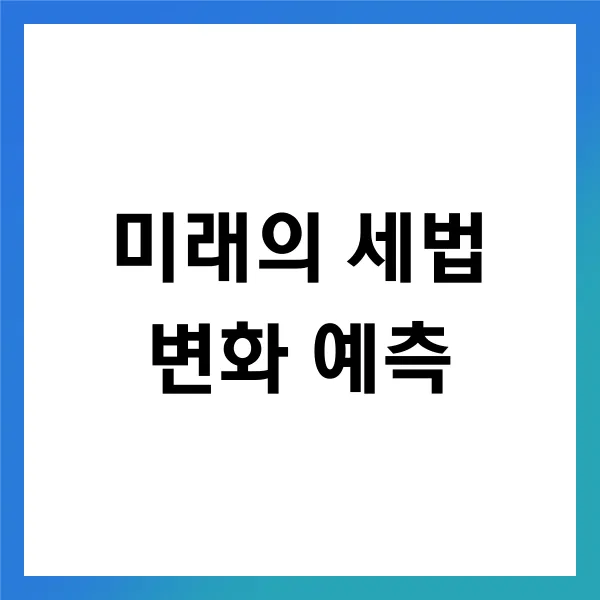 미래의 세법 변화는 경제 환경, 정부의 재정 정책, 국제적 흐름 등 다양한 요인에 의해 영향을 받을 수 있습니다. 현재 정부가 추진하는 정책 방향과 경제 상황을 고려할 때, 향후 몇 년간의 세법 변화는 몇 가지 중요한 측면에서 예측할 수 있습니다.