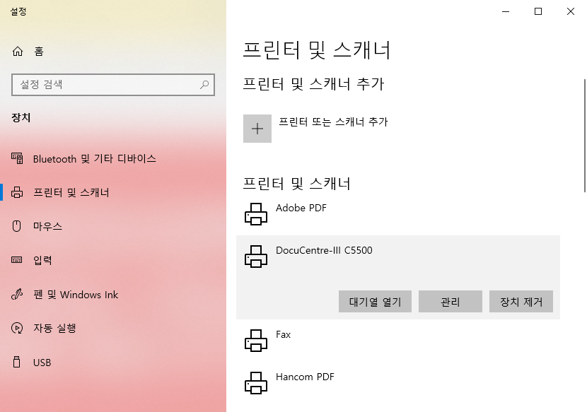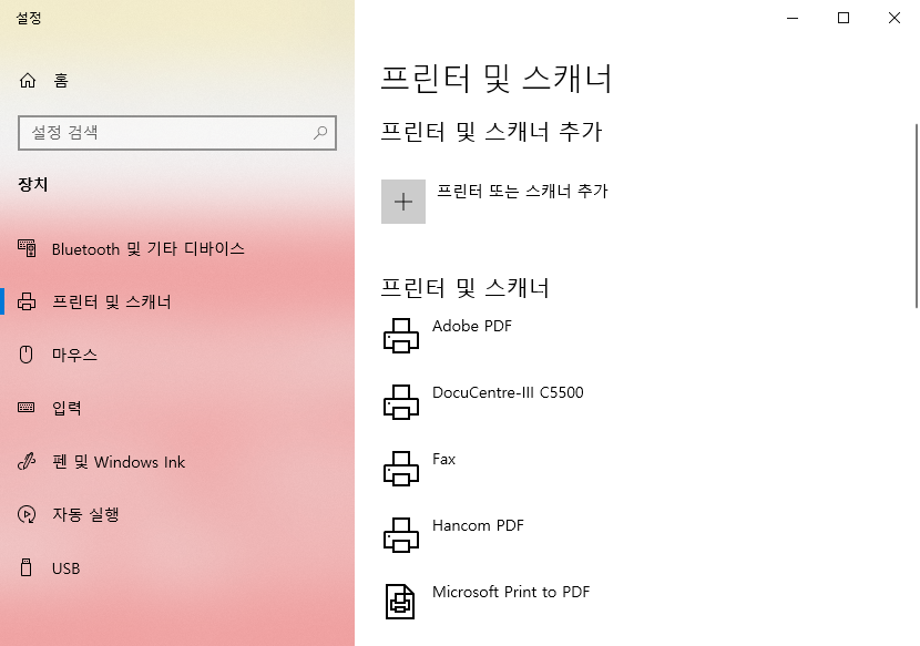 옆에 있습니다. 그곳을 클릭 후 '프린터'