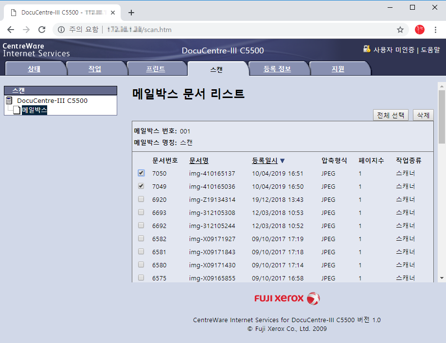 '스캔' 탭을 선택합니다. 스캔 폴더를