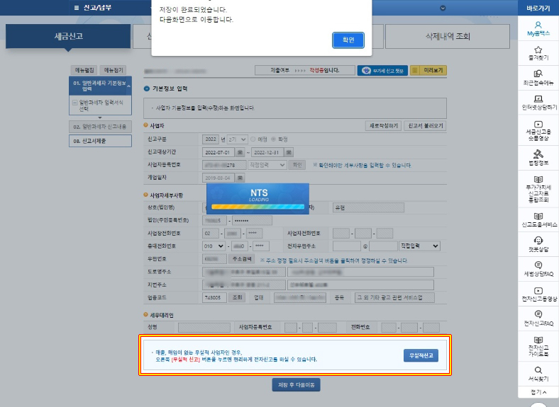 "PC홈택스 무실적신고 작성해야 하는 개인사업자"